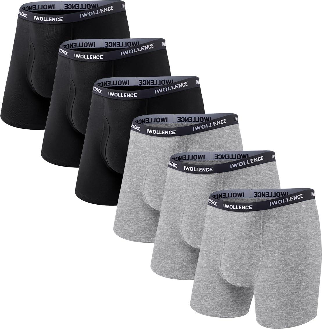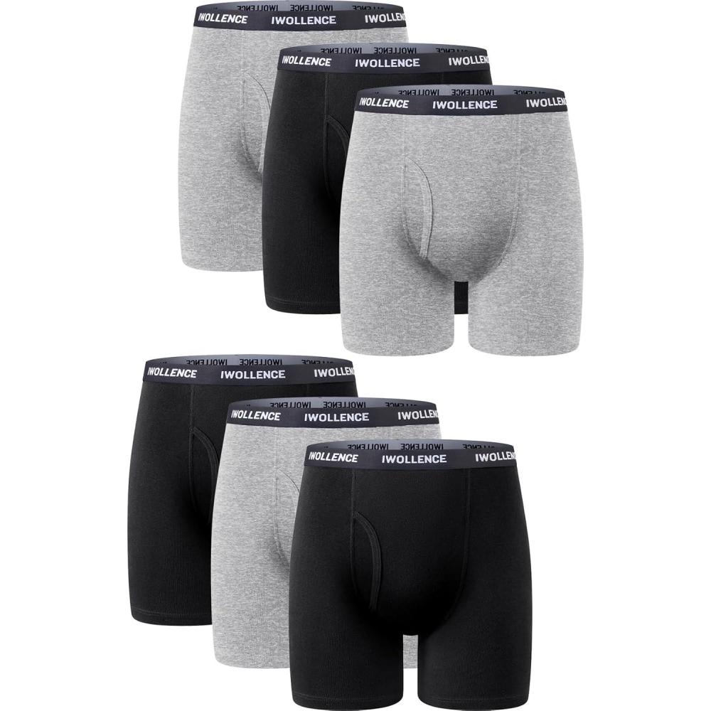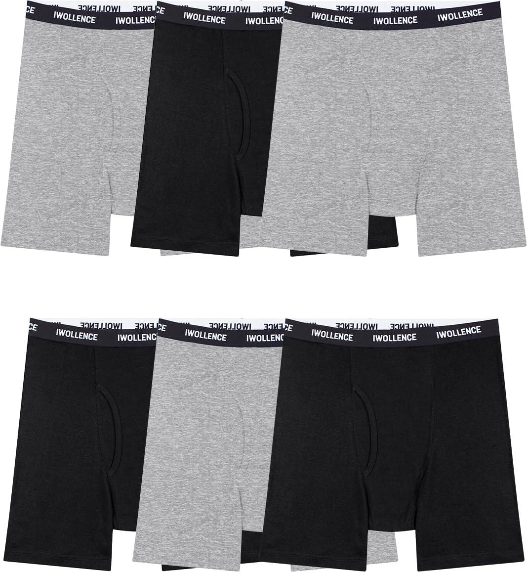 IWOLLENCE Men’s Boxer Briefs Breathable Soft Moisture-Wicking Cotton Underwear with Comfort Flex Waistband, Multipack(Black Gray 6pack)