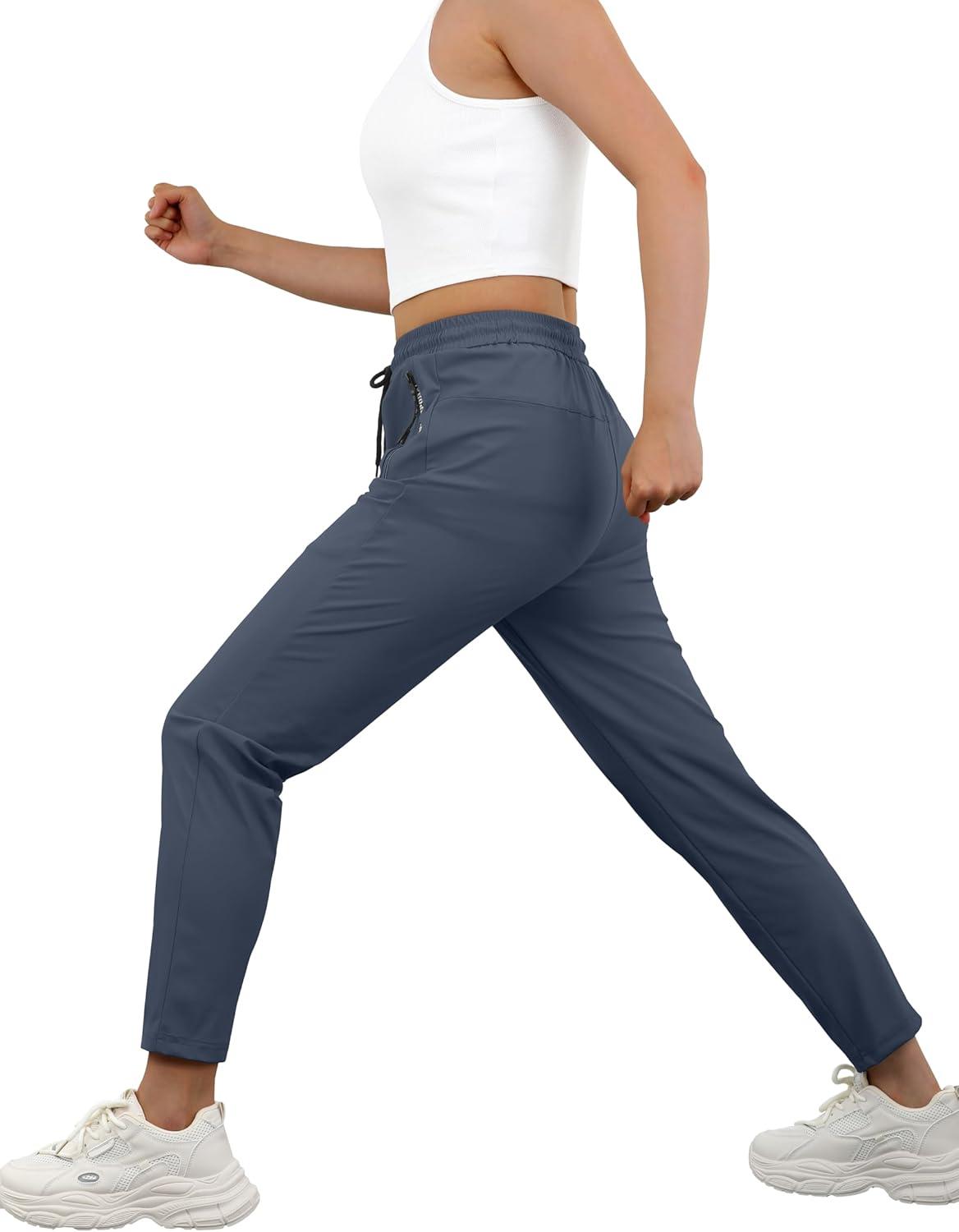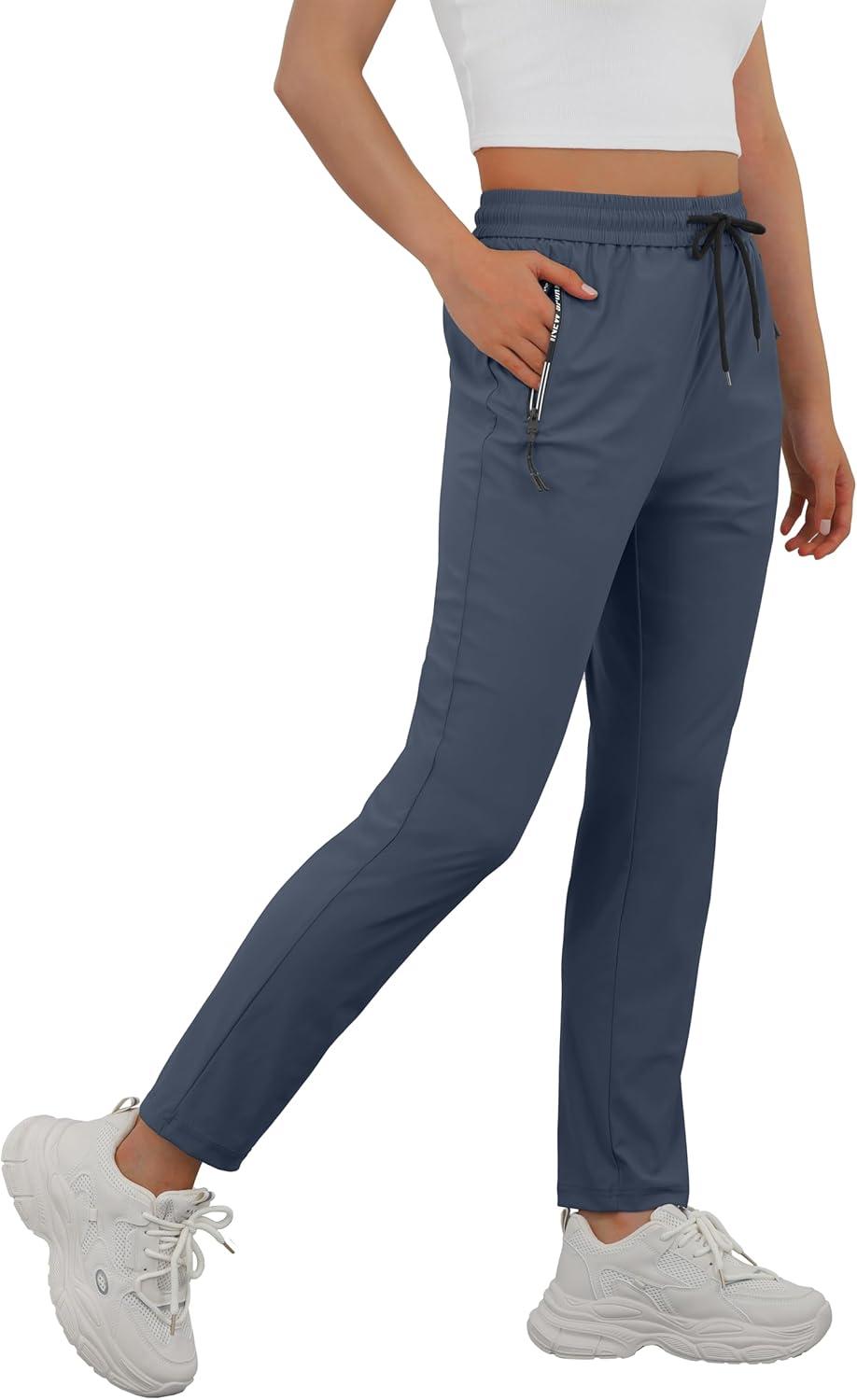 IWOLLENCE Women’s Active Stretch Pants Quick Dry Breathable Athletic Comfy Fit Hiking Pant with Zipper Pockets(C-navy Blue)