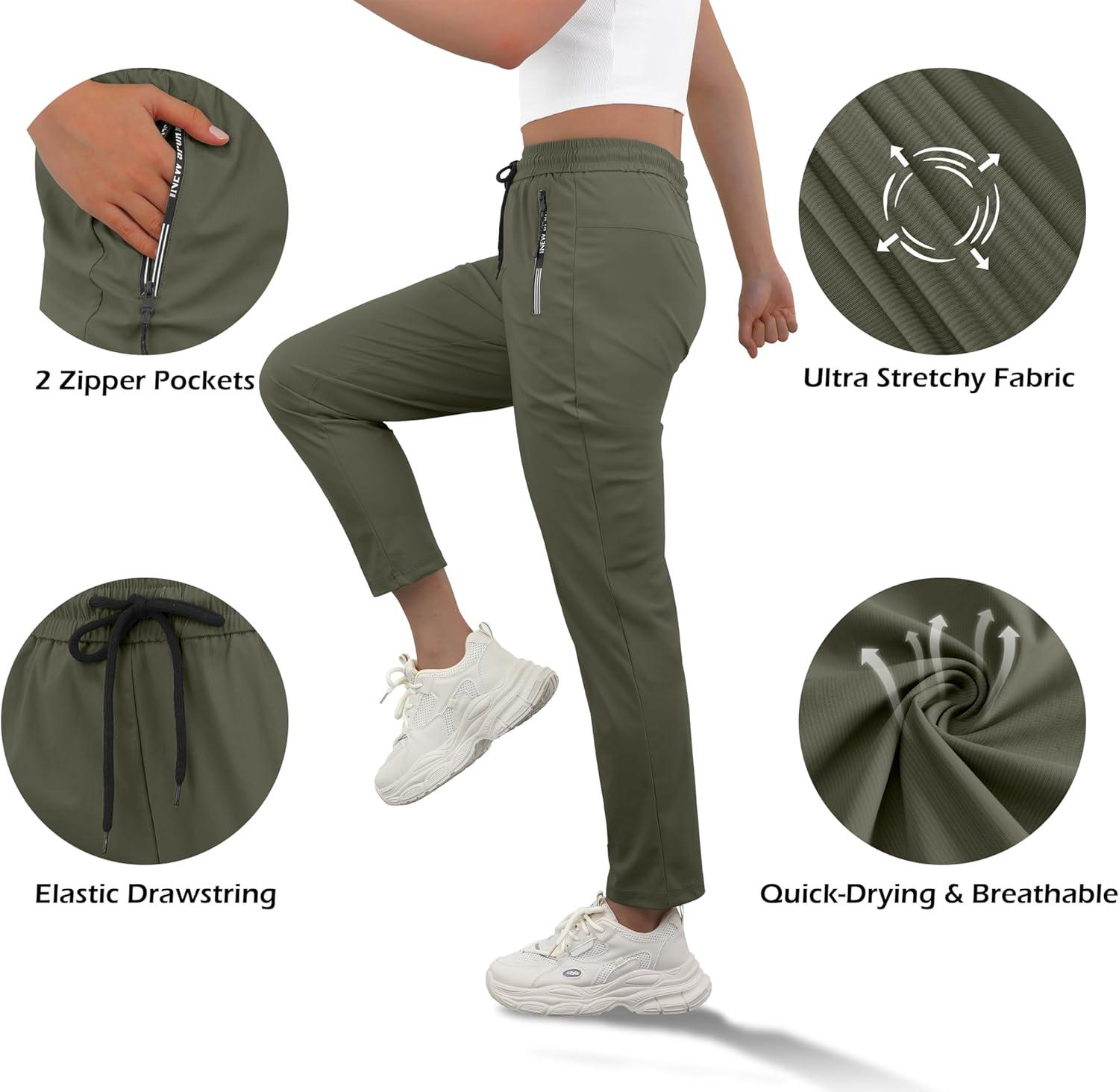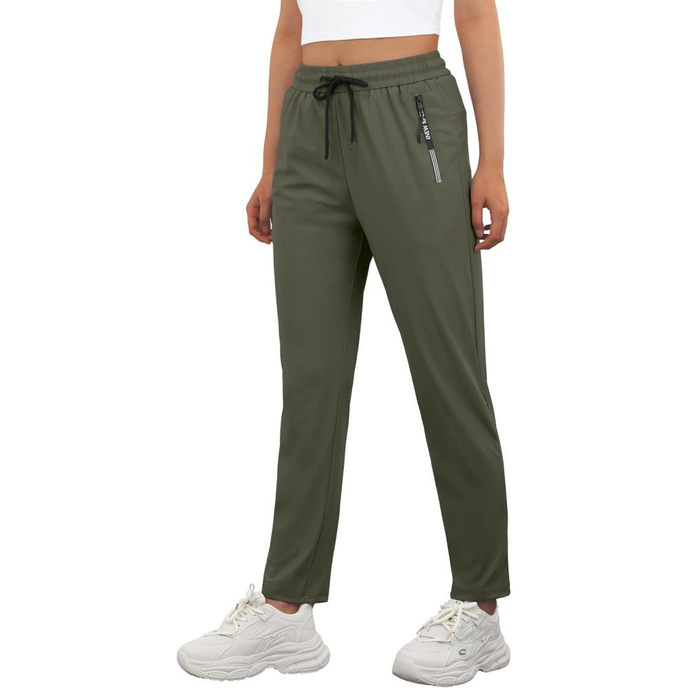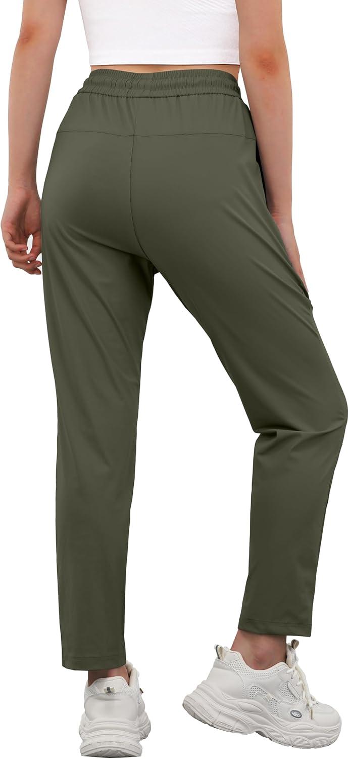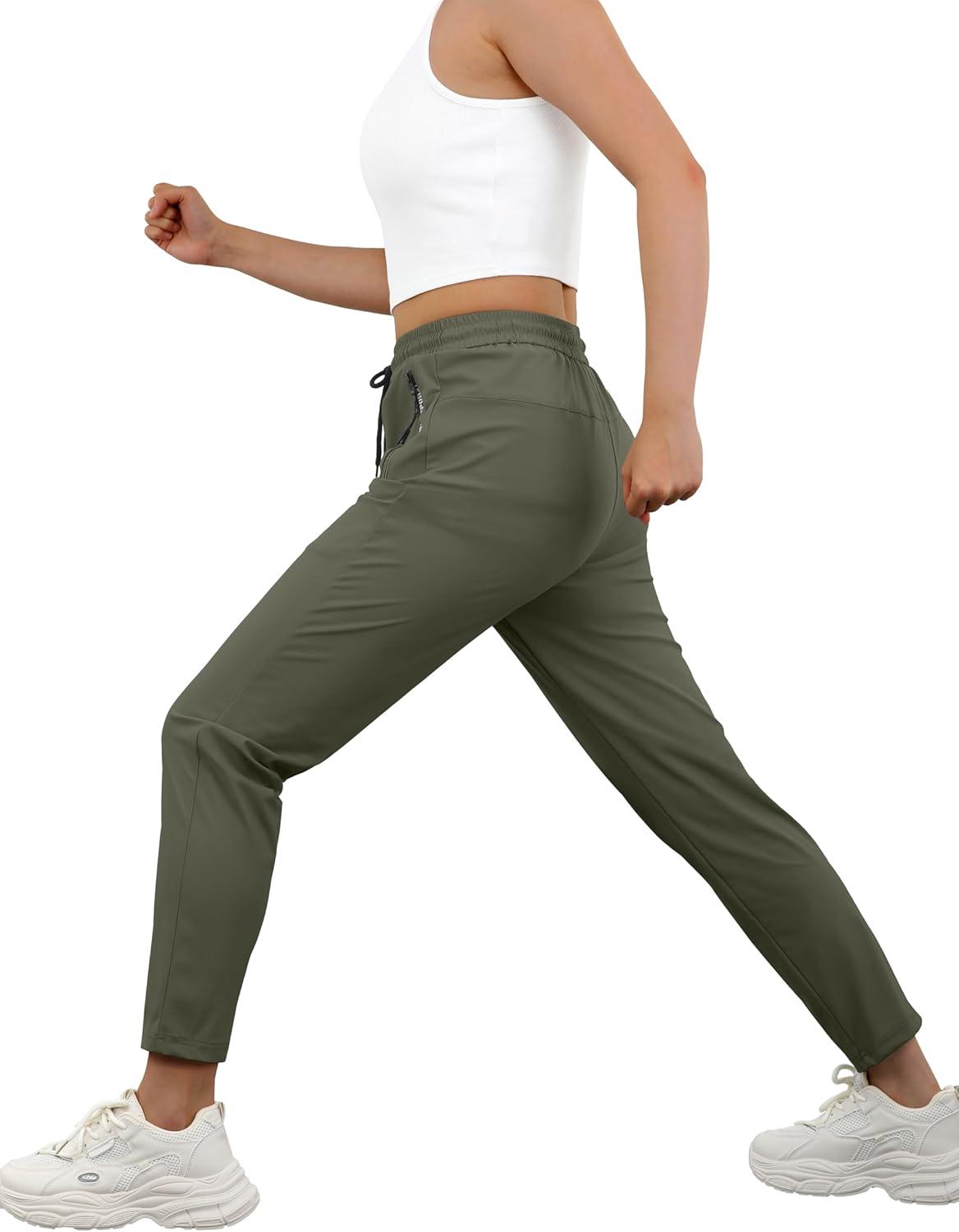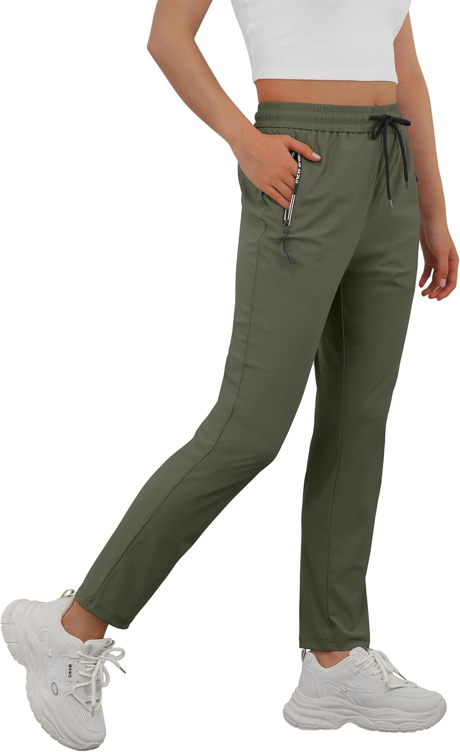 IWOLLENCE Women’s Active Stretch Pants Quick Dry Breathable Athletic Comfy Fit Hiking Pant with Zipper Pockets(C-olive Green)