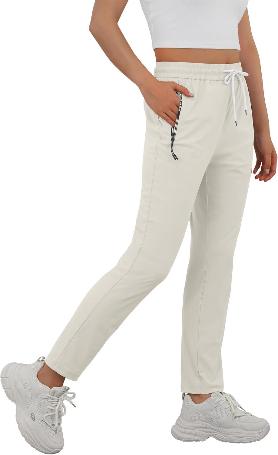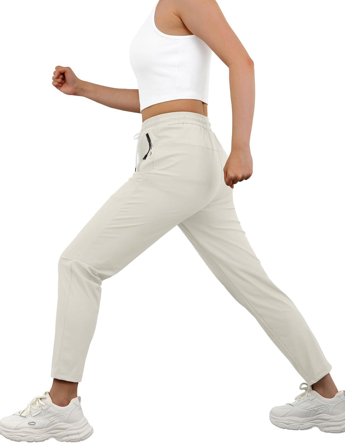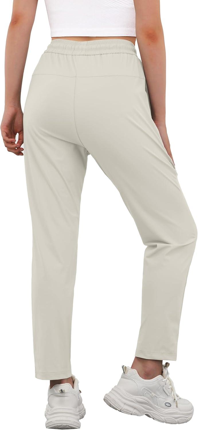 IWOLLENCE Women’s Active Stretch Pants Quick Dry Breathable Athletic Comfy Fit Hiking Pant with Zipper Pockets(Light Khaki)