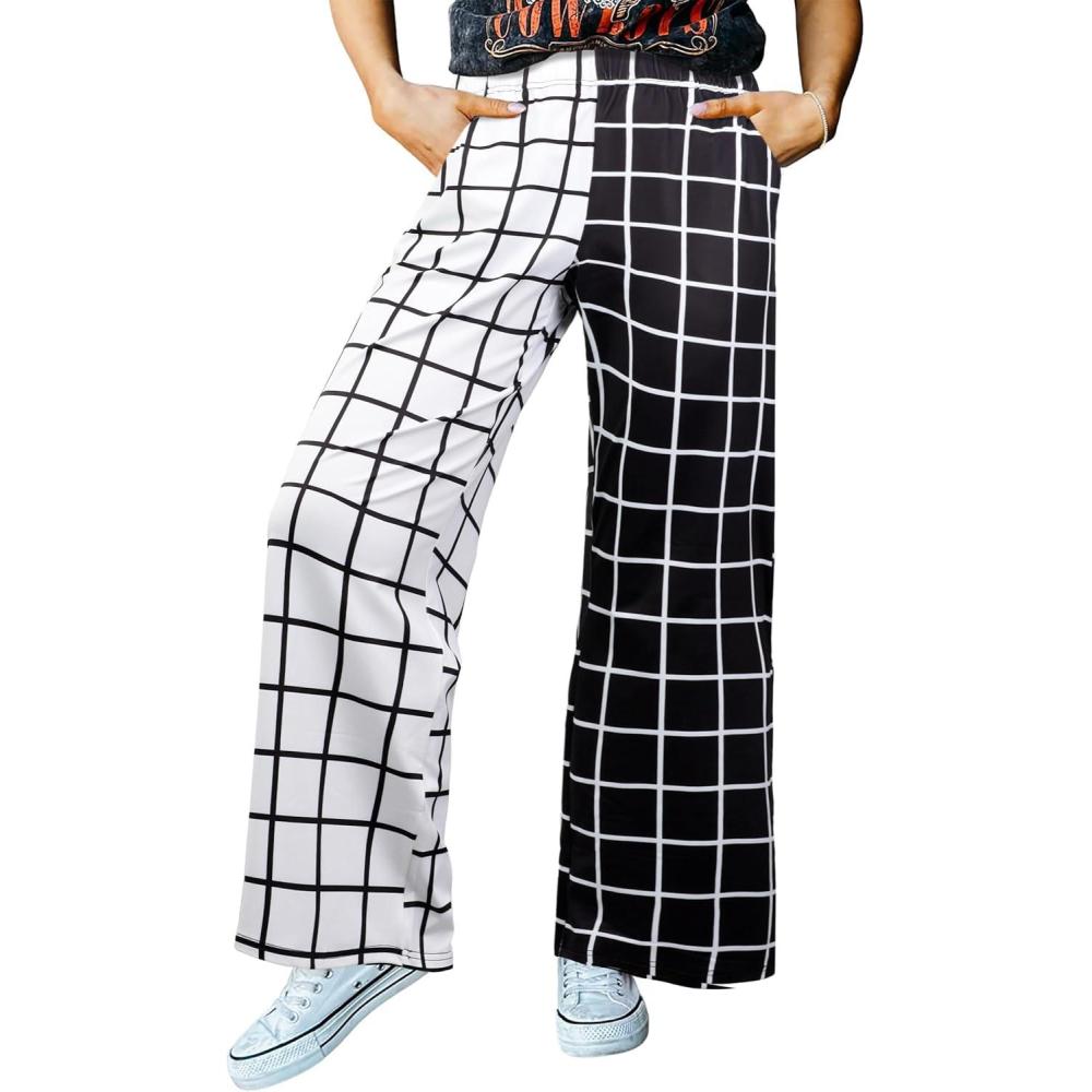 IWOLLENCE Women’s Casual Loose Checkered Wide Leg Pants High Waist Straight Lounge Y2K Gingham Trousers(Bw-black White Contrast)