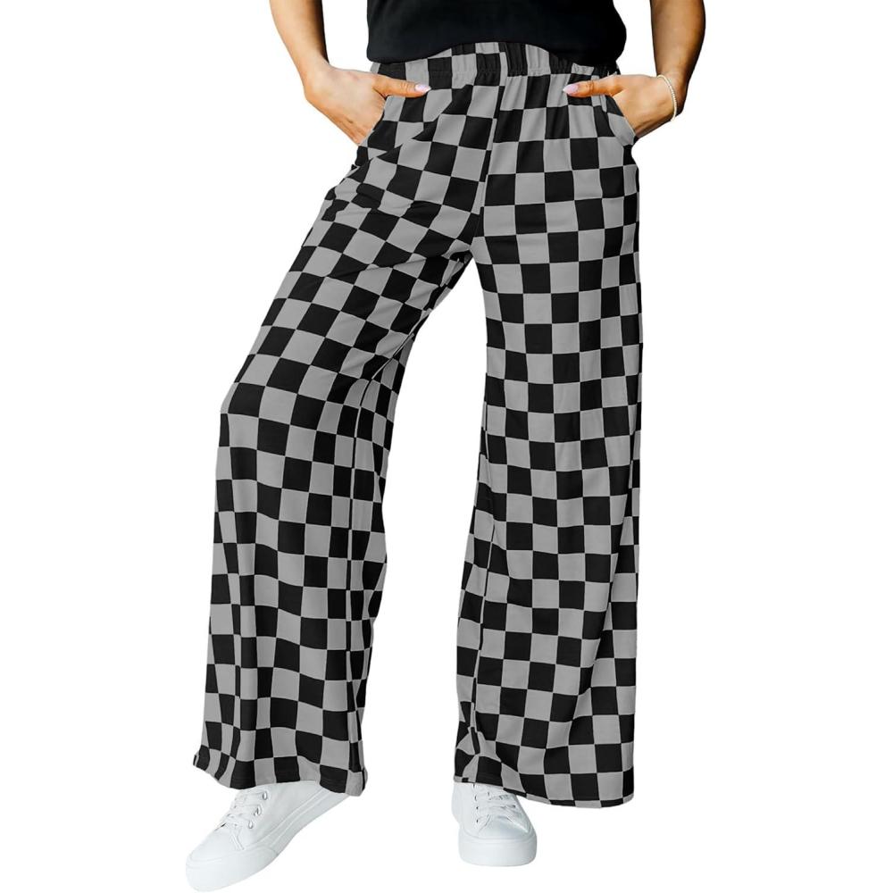 IWOLLENCE Women’s Casual Loose Checkered Wide Leg Pants High Waist Straight Lounge Y2K Gingham Trousers(Cd-black Grey)