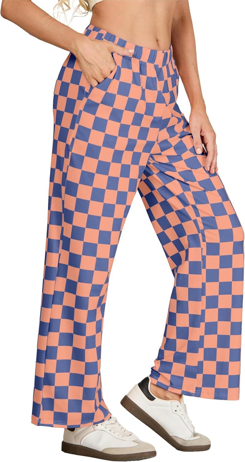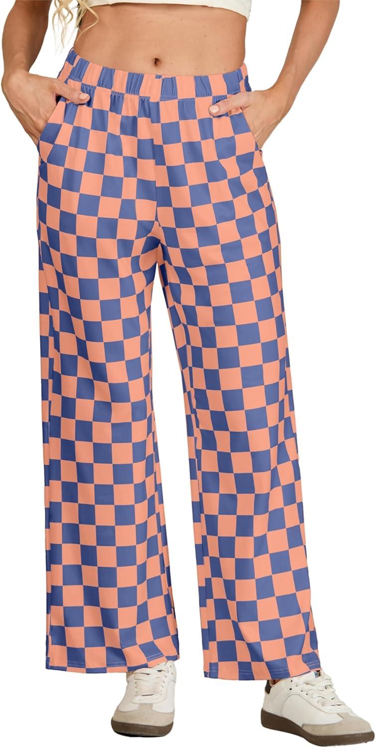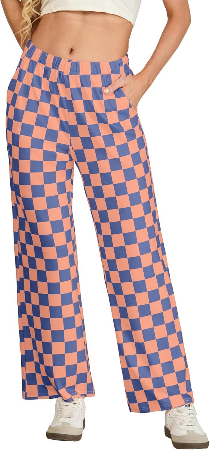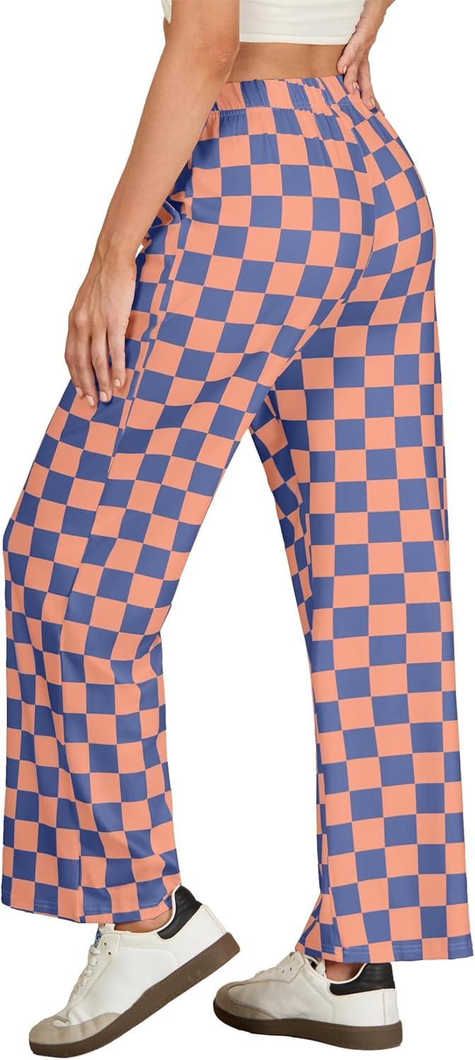 IWOLLENCE Women’s Casual Loose Checkered Wide Leg Pants High Waist Straight Lounge Y2K Gingham Trousers(Cd-orange Wihte)