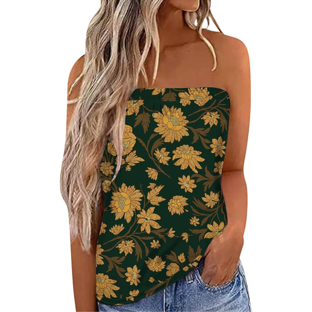 IWOLLENCE Women’s Floral Tube Tops Casual Summer Backless Strapless Top Sleeveless Bandeau Tanks Shirt(Fp Green Gold Flower)