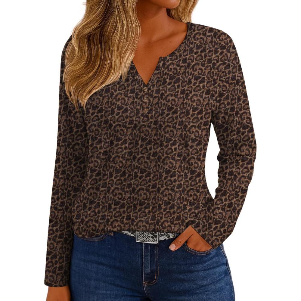 IWOLLENCE Womens Long Sleeve Aztec Western T Shirts Vintage Geometry Graphic Henley Tops Casual Button Down Blouse(Ld-khaki Cheetah)