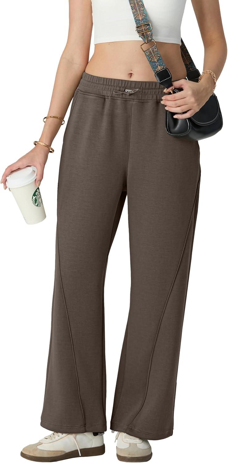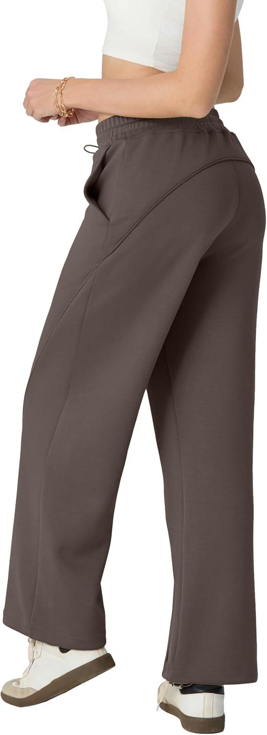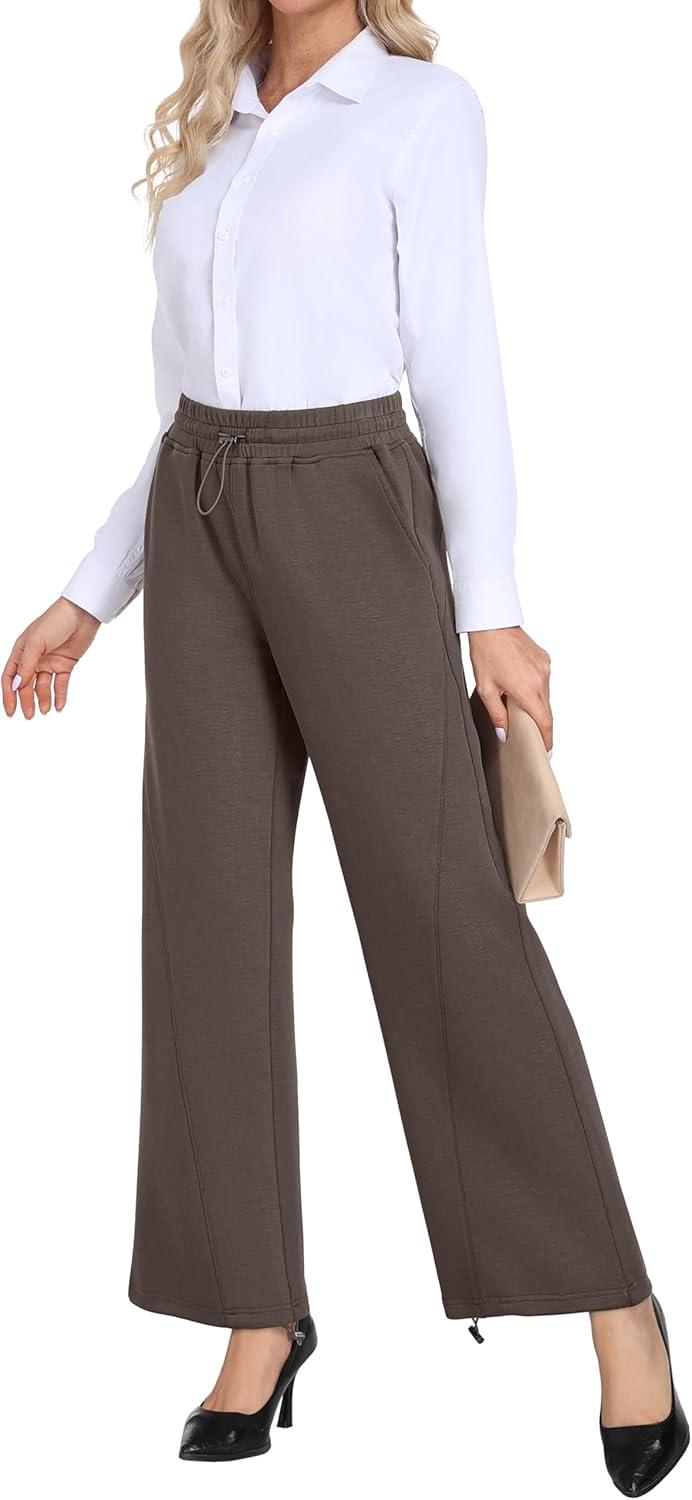 IWOLLENCE Womens Wide Leg Sweatpants Mid Rise Adjustable Drawstring Baggy Sweat Pants with Pockets(Brown)